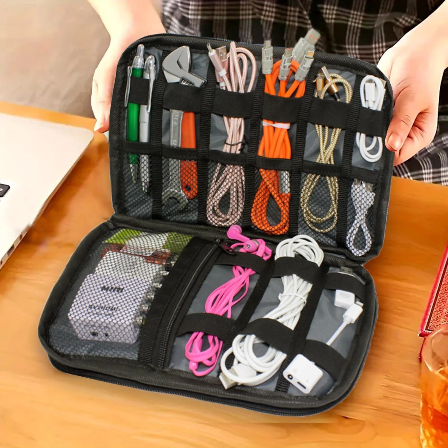 Microcase çok gözlü organizer çanta, günlük hayatta ve seyahatlerde eşyalarınızı düzenli bir şekilde taşımanızı sağlayan pratik ve şık bir çözümdür. 9 farklı bölmesi sayesinde telefon, cüzdan, makyaj malzemeleri, kablolar, kulaklık ve diğer kişisel eşyalarınızı kolayca organize edebilirsiniz. 27x18 cm ölçülerindeki kompakt tasarımı ile fazla yer kaplamadan çantanızın içinde düzen sağlar. Ayrıca fermuarlı iç cebi sayesinde önemli eşyalarınızı güvenli bir şekilde saklamanıza olanak tanır.