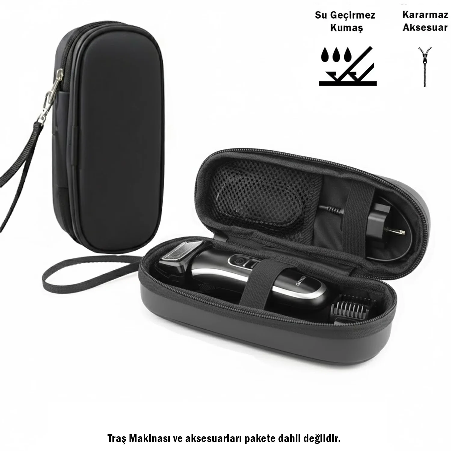 Su Geçirmez Kumaş ve Malzeme: Ürünün dış yüzeyi tamamen su geçirmez kumaş ve malzemeden üretilmiştir. Bu sayede banyo, çanta içi ve diğer nemli ortamlarda diş fırçanızın ve aksesuarlarınızın ıslanmasını önler, maksimum koruma sağlar.