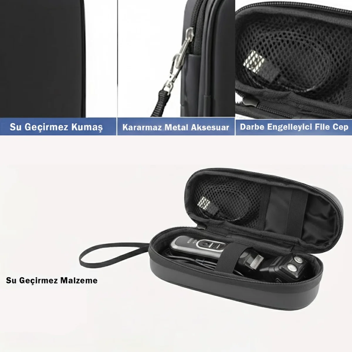 Darbeye Dayanıklı Yapı: Sert dış kabuğu ve iç kısmında bulunan darbe engelleyici file cep sayesinde, düşme, çarpma ve sıkışma gibi durumlarda şarjlı diş fırçanızın zarar görmesini engeller.