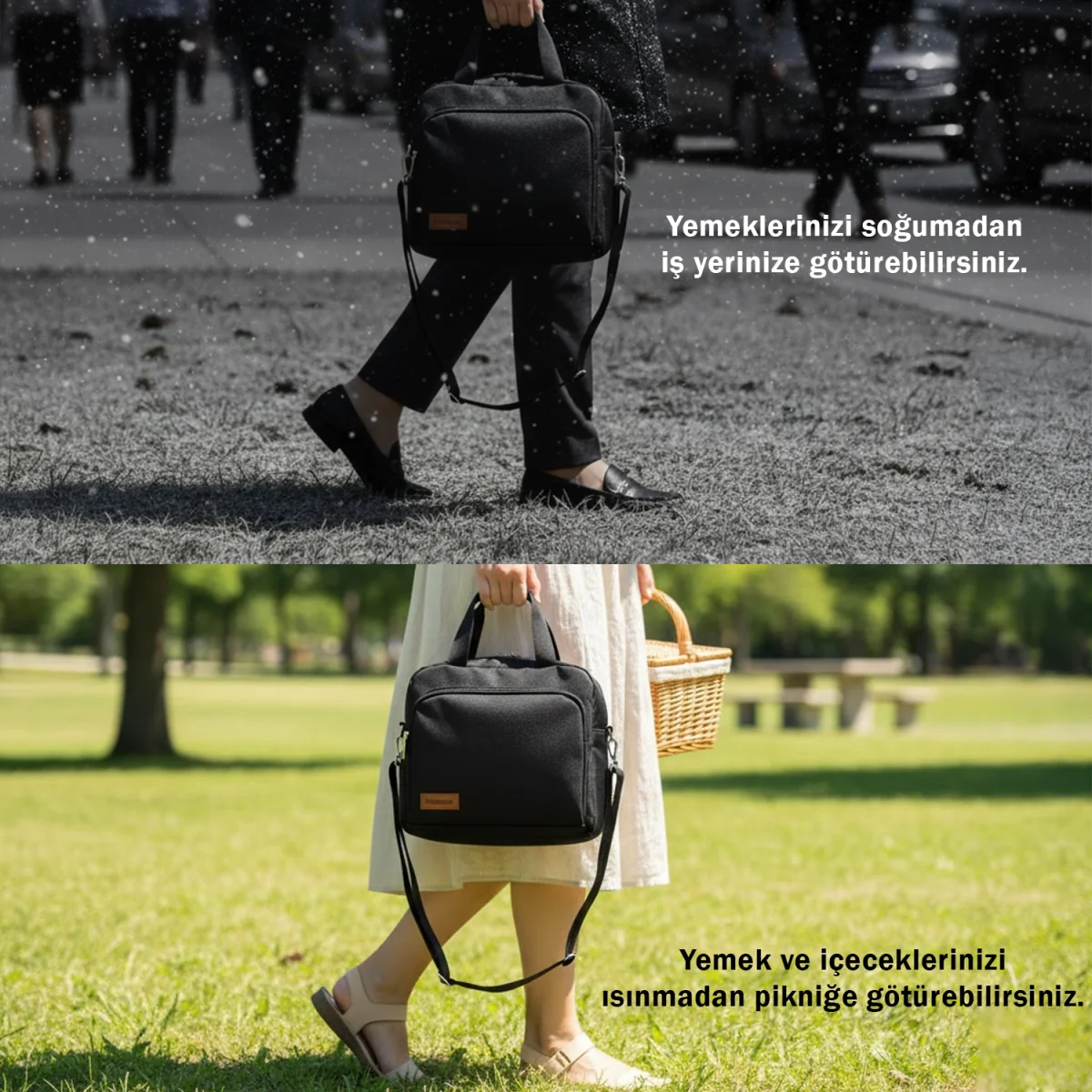 Sıcak/Soğuk Tutma (İzolasyon): Çanta, yiyecek ve içecekleri hem sıcak tutma hem de soğuk tutma özelliğine sahiptir.