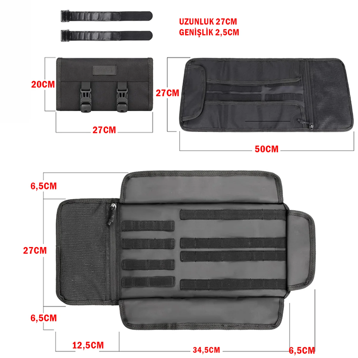 - İç kısmında farklı aletler için çoklu lastikli sabitleme bölmeleri